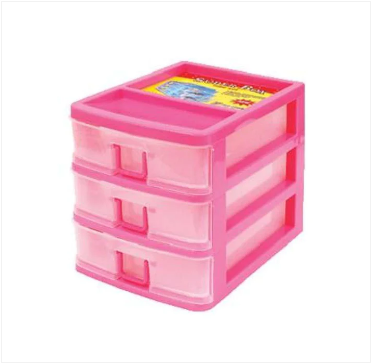 3 Draw Sewing Box Home Bedroom Plastic Makeup Sewing Box x 1