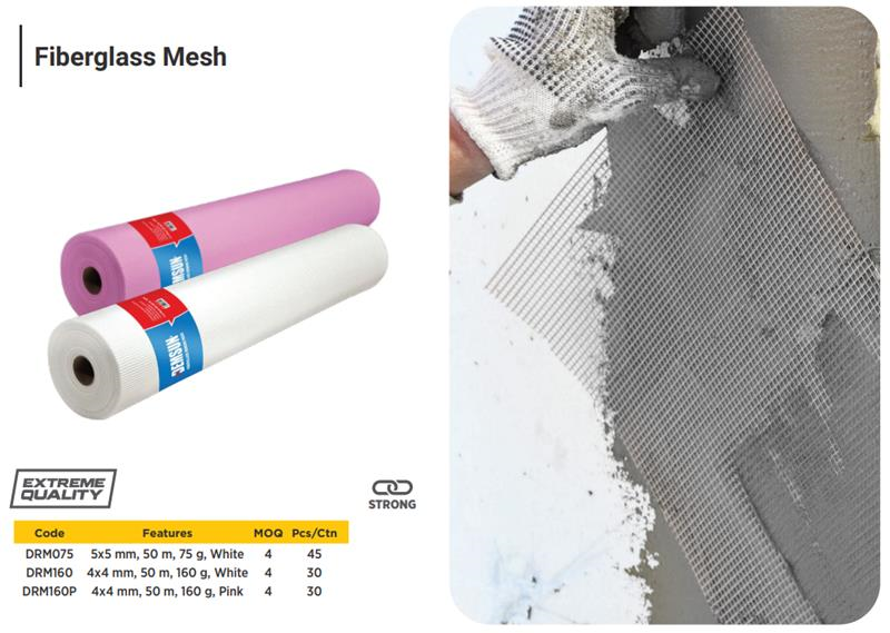 - This glass fibre woven mesh is alkali resistant and acts as an anti-crack reinforcement system.