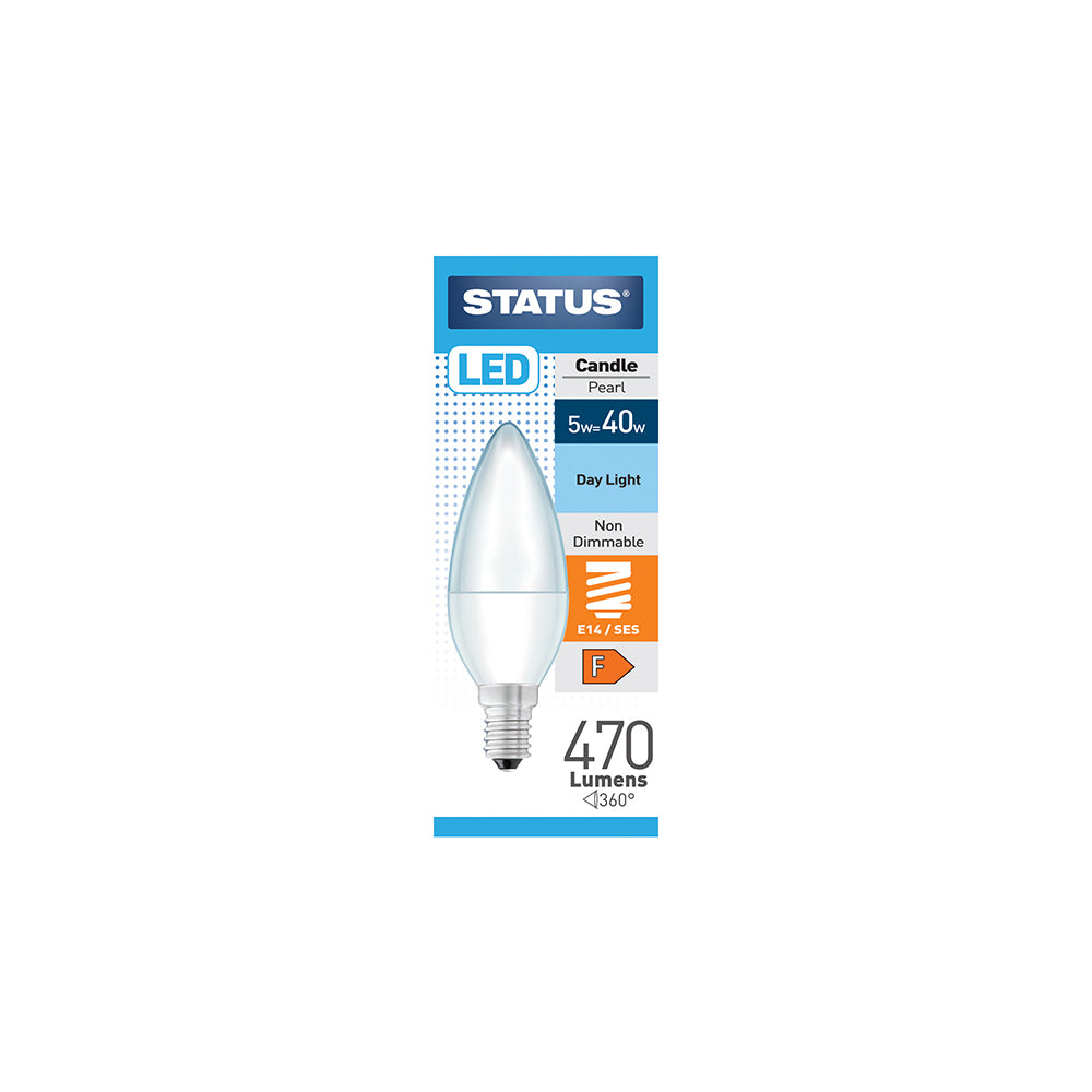 - 5w = 40w = 470 lumens - LED - Candle - E14 - PA - Pearl - Day Light- 1 pk box - in White CDU