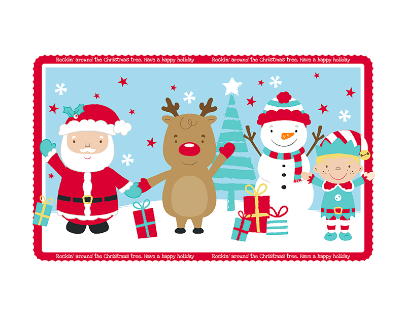 Measuring 30cm x 19.2cm x 1.5cm, it is made from wipe clean plastic and features a fun Christmas character design.
