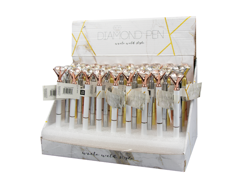 Each pen features a twist action to revel the writing point and is complete with a decorative diamond on the top.