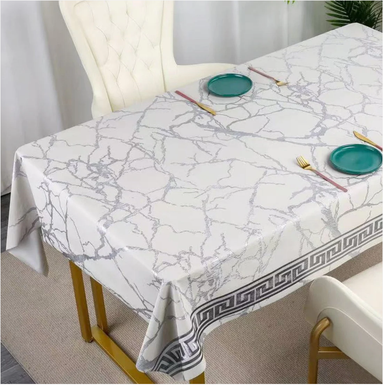 Durane Plastic Table Cover Roll White Marble Silver Pattern Design 1.37x20m