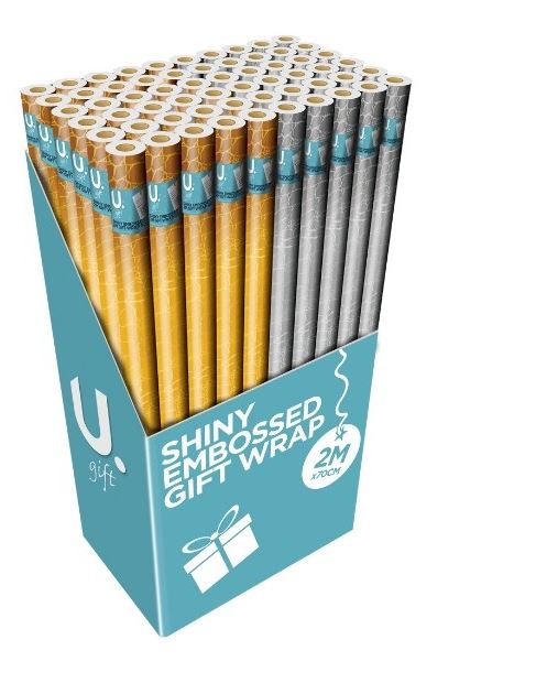 Elevate your gift-giving with U.® Gift Embossed Metallic Giftwrap. Available in stunning gold and silver colours, featuring a beautiful, textured design. Each 2m x 70cm roll is designed for quick resale in-store or online, it's the ideal choice to add a touch of luxury to the Christmas season.