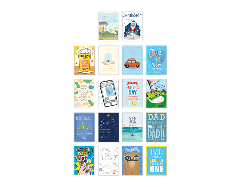This Father's Day card offering contains an assortment of 18 cards with individual designs. Ensuring that there is a card suitable for all father figures.