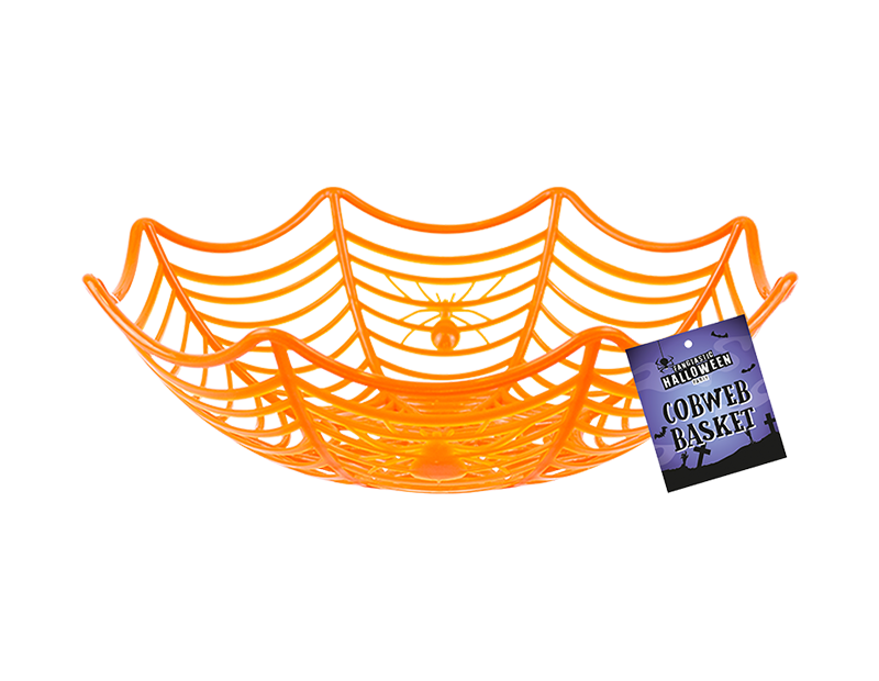Each Halloween serving basket is constructed from plastic and is designed in the shape of a spiders web, complete with two decorative spiders.