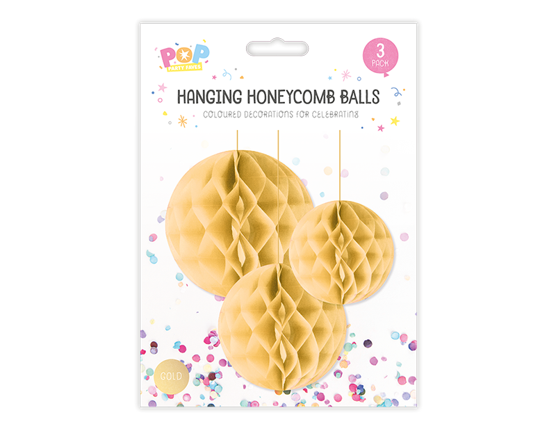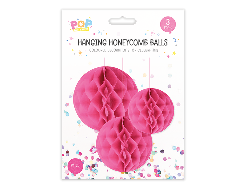 These three packs of Honeycomb Ball Decorations contain individual decorations in two sizes, 27cm in diameter and 23cm.