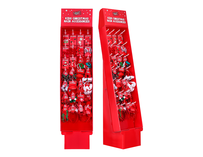 This display unit of Kids Christmas Hair Accessories comprises a whole range of Christmassy themed hair pieces including hairbands, hairclips, scrunchies and bobbles.