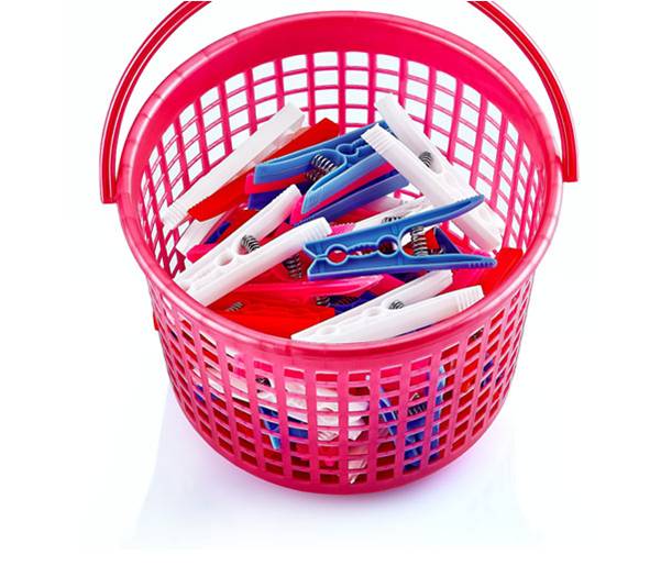 Plastic Clothes Pegs Basket Assorted Colours