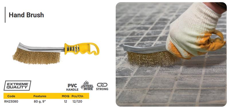 - Brass-plated brush for damp applications and natural wire for dry applications.